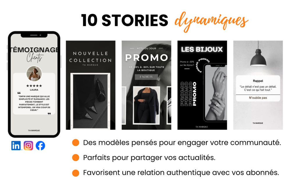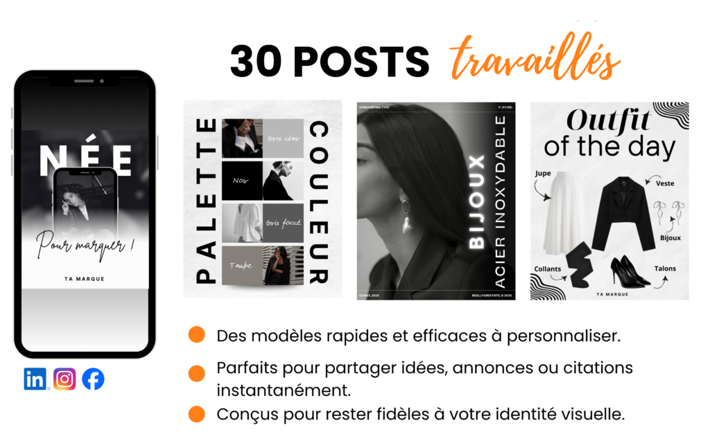 L’idée est simple : vous offrir une base déjà harmonieuse et professionnelle, que vous pouvez modifier facilement pour créer un feed propre, stylé et fidèle à votre manière de présenter la mode.