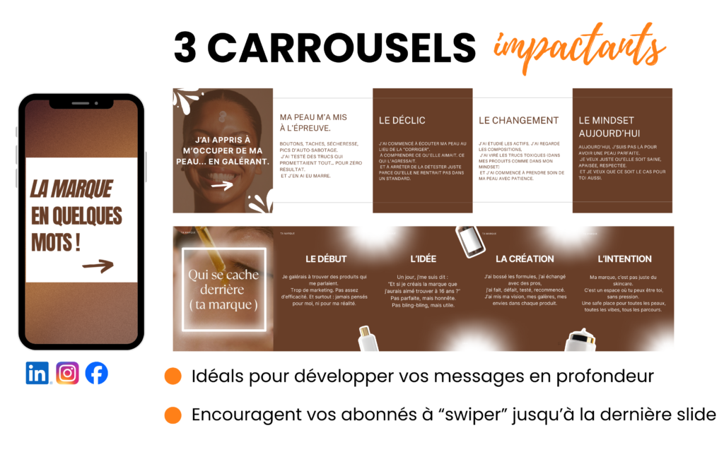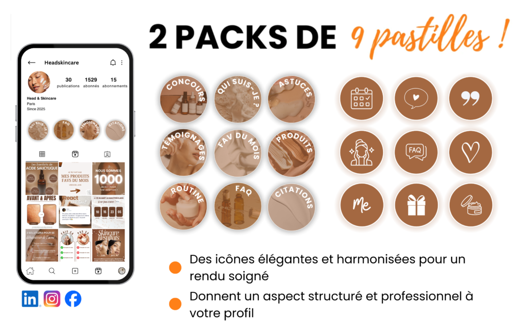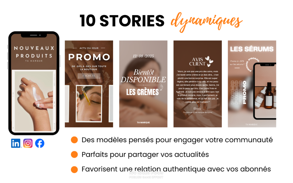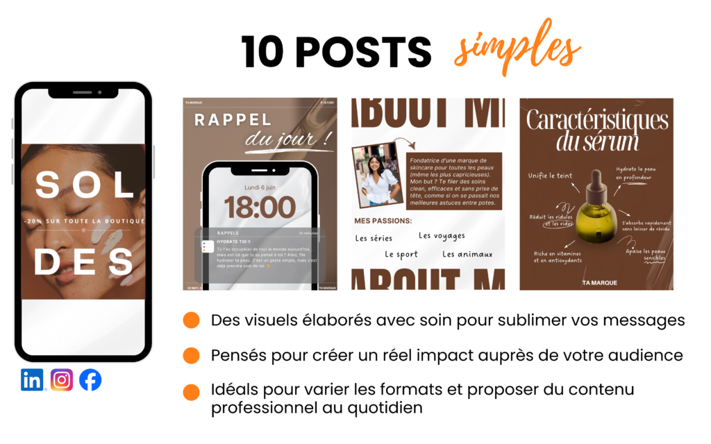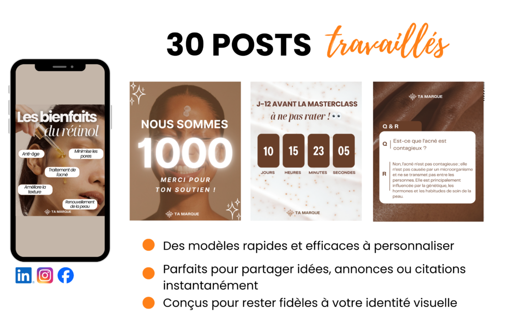 En somme : une base sui suit les tendances, déjà optimisée, et qui vous permet de créer du contenu professionnel en quelques minutes, tout en gardant la ligne directrice de votre univers skincare. ✨